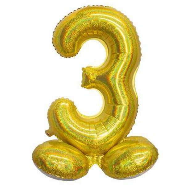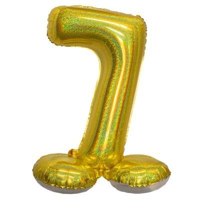 Cijferballon op voet 81 cm - folie - goud holografisch