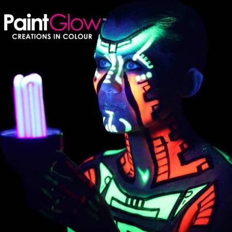 De UV verf (ofwel fluorescerende verf) heeft een dubbele functie. Ten eerste geeft de neon UV glow verf, gel en make-up een fluoriscerend effect in regulier daglicht. Ten tweede licht het UV product enorm op wanneer het in aanraking komt met een Blacklight of ander type UV licht.